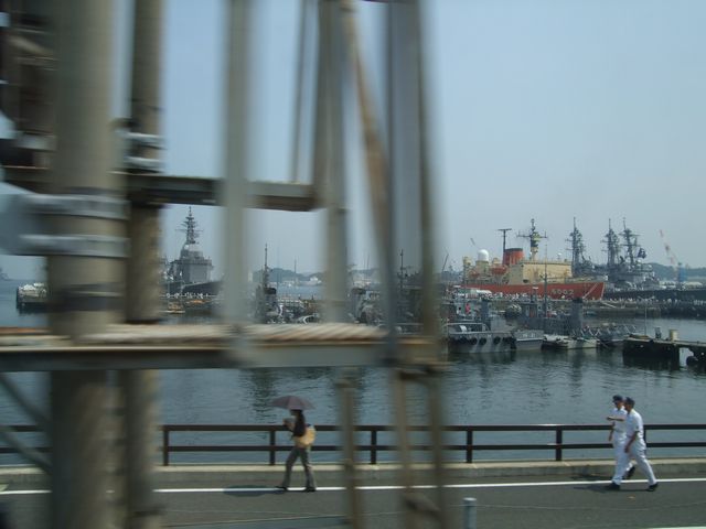 まもなく横須賀駅直前で、ちょっと基地の様子が伺えるところで一枚目