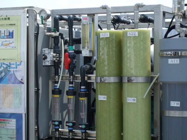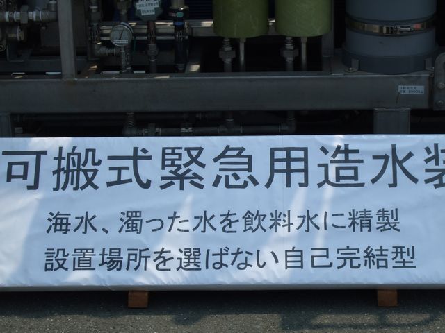 海水や泥水を真水に変えるところを実演してた。
