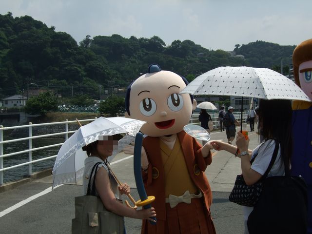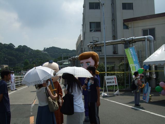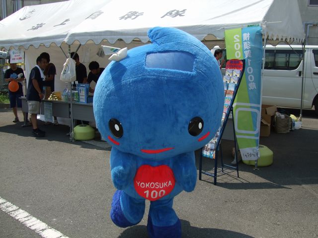 横須賀市制100周年のキャラクターに出迎えてもらう。